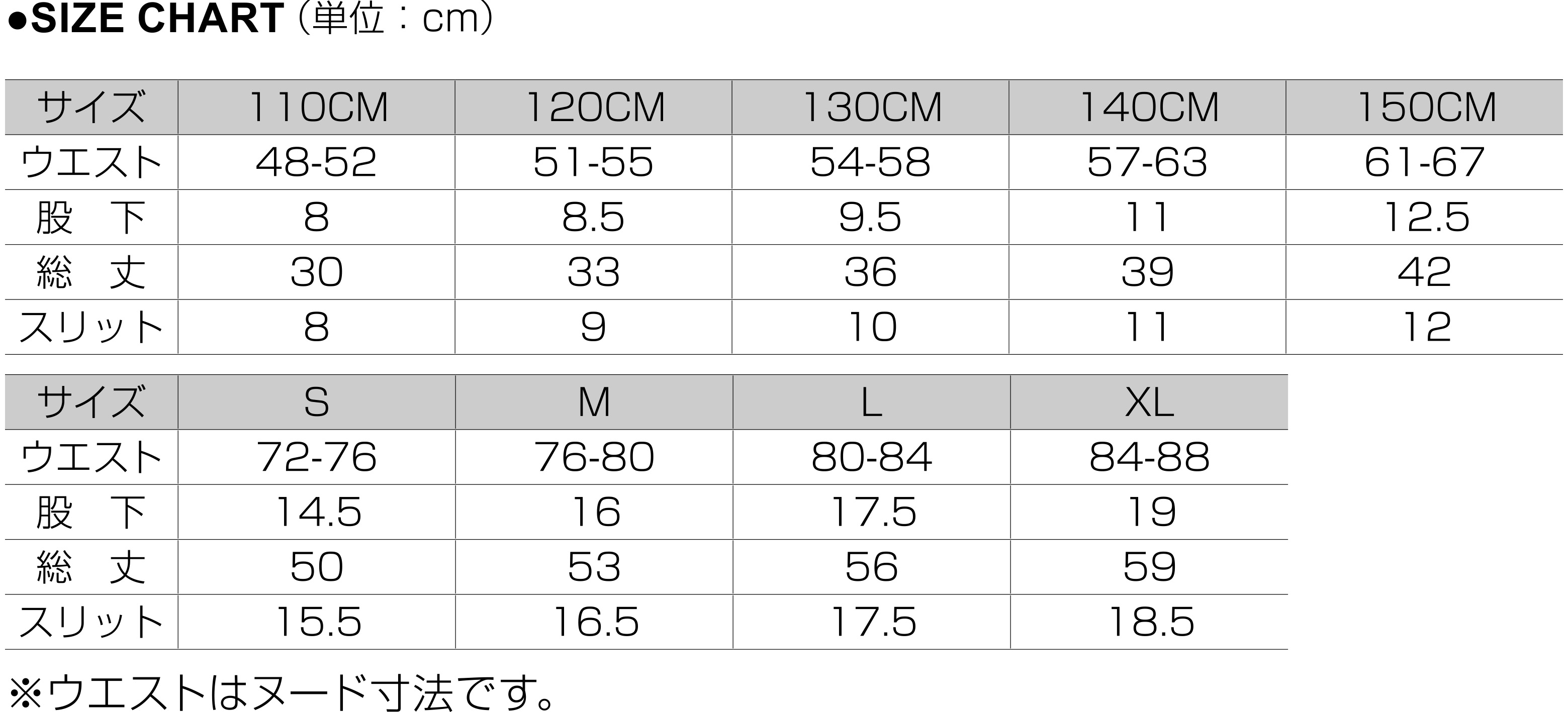 | Size | S | M | L | XL | 110 | 120 | 130 | 140 | 150 |