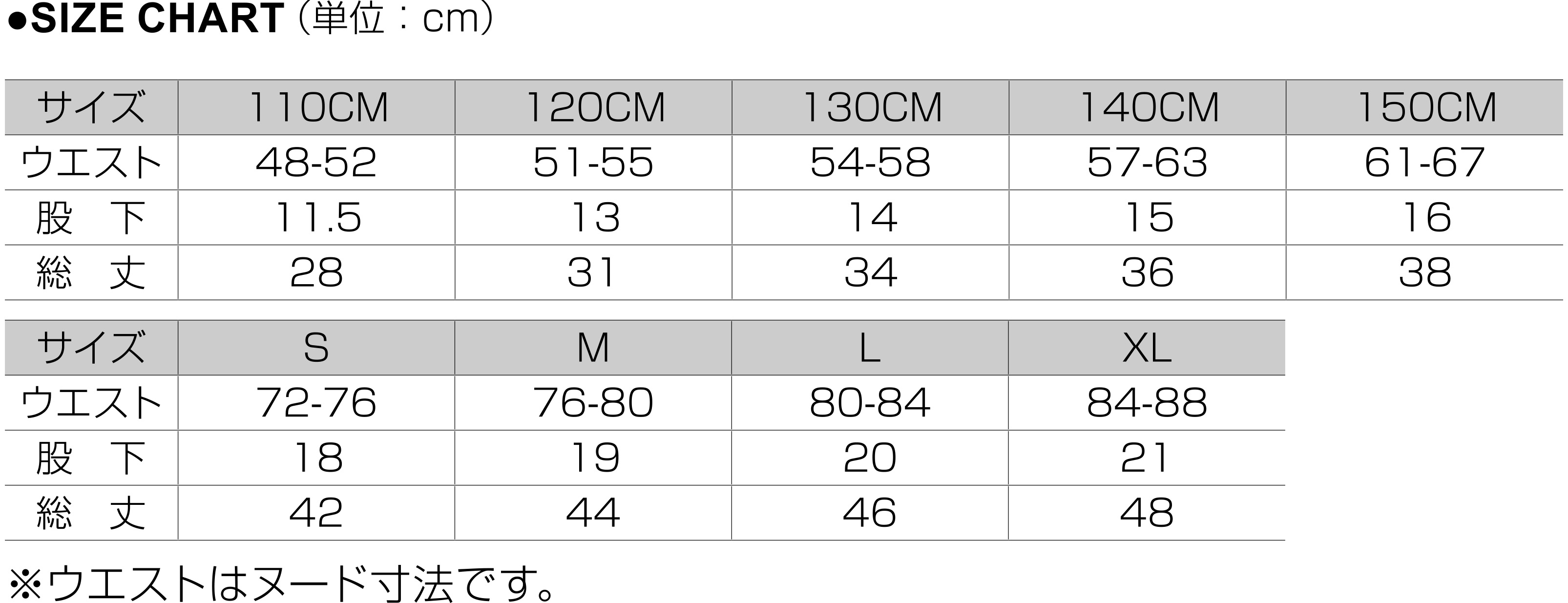 | Size | S | M | L | XL | 110 | 120 | 130 | 140 | 150 |