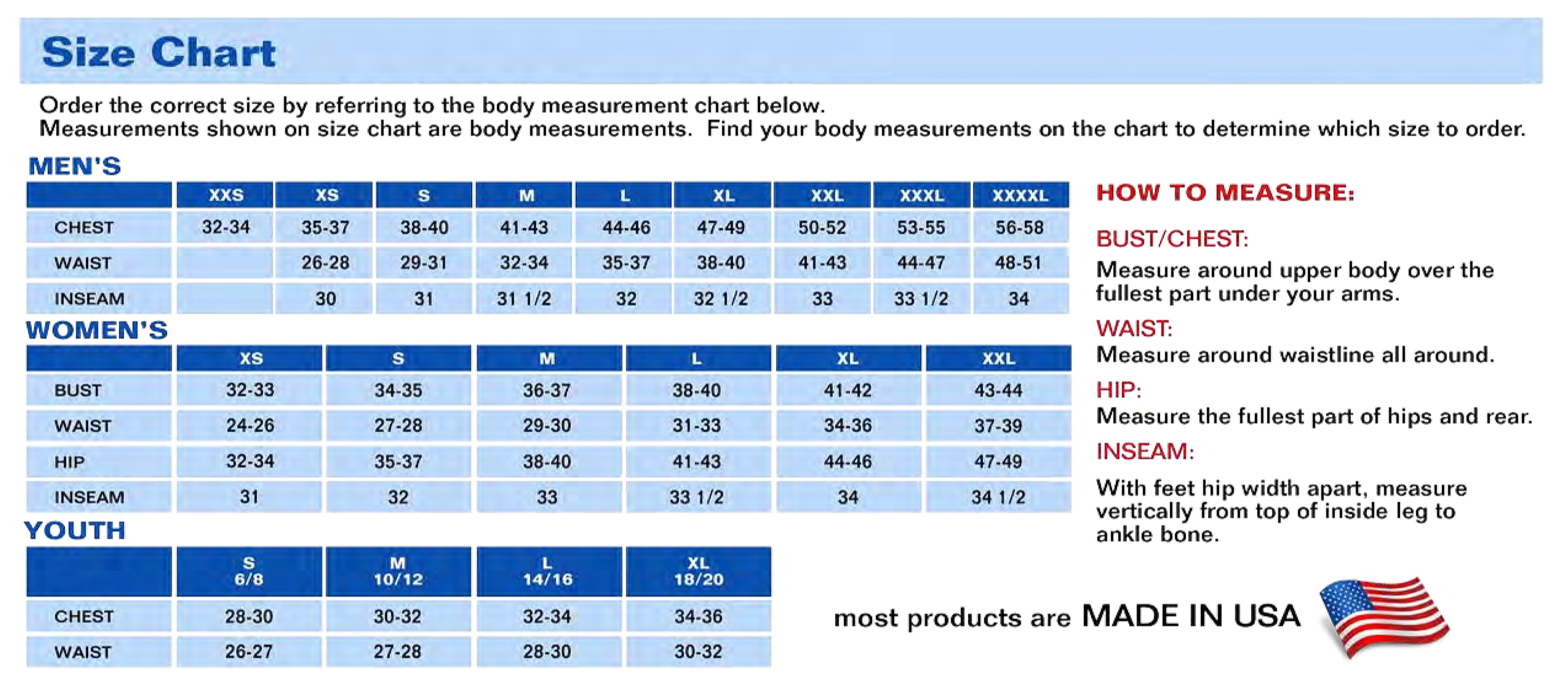 | Waist | 29-31 | 32-34 | 35-37 | 38-40 | 41-43 | 44-47 | 48-51 |