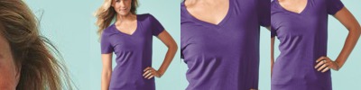 - Two-needled coverstitched neck, armholes, and waistband