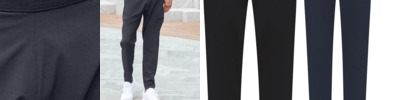 Men’s technical trousers. Tapered leg. Four-way stretch fabric. Anti-static finish. Two side zipped pockets. Rear zipped pocket. Rear yoke panel with centre seam. Flat front waistband. Internal drawcords. Twin-needle stitched hem.