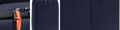 Golf pouch with clip attachment. Made, in part, with recycled materials.