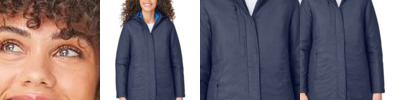 - Center front reverse coil zipper with auto-lock slider and reflective toggle