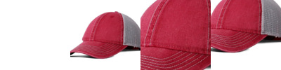 Contrasting nylon mesh back; Performance Pearl Nylon UPF 50+; Moisture-wicking sweatband; Prostitching; Adjustable hook and loop closure;