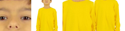 - Striped rib on neck, cuff, and waist