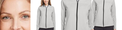 - Hidden front semi-auto-lock zipper with accent color collar stand