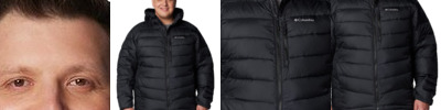 - Inside placket; roll-away hood; adjustable cuffs with tabs