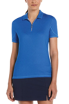 Made for days that start on the course and end at the clubhouse. This unique ¼ zip polo blends performance and personality with its sleek chev pattern, contrast stitching and breathable, stretch fabric. 8.3-oz, 94/6 performance polyester/spandex jersey knit fabric. Tagless. Self-fabric collar. 1/4 zip with Callaway signature zipper pull. Overlock decorative stitch on sleeve. Double needle hemmed bottom with side vents. Tonal embroidered Callaway logo on back collar. Cooling Opti-DriTM. UV Block = UPF 50. Stretch fabric. Moisture wicking. Breathable. Relaxed fit.