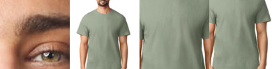 4.3-ounce, 100% combed ring spun cotton, 32 singles 90/10 cotton/polyester, 32 singles (Heather Gray) 1x1 rib knit crewneck collar Shoulder to shoulder taping Tear-away label Side seamed Curved hem