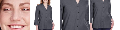 DG562W Women's Crown Collection® Stretch Pinpoint Chambra Three-Quarter Sleeve Shirt