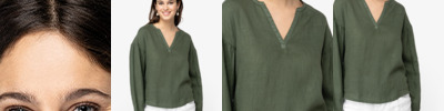 100% linen. Comfort fit. Dropped shoulders. V shaped buttonless placket. Gathered at armholes and cuffs. Recycled plastic single button cuff. Straight hem. Tag free. Garment washed after assembly, colours may vary slightly. Special Order items are non-stock Items ordered from the supplier. These items are non-returnable, and lead times may vary.