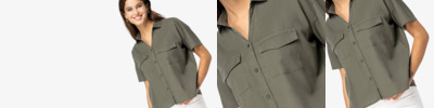 SP523 Spasso Ladies Short Sleeve Linen Bowling Collar Shirt