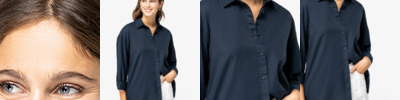 60% TENCEL™ lyocell/40% organic cotton. Enzyme washed. Slightly flared loose fit. Recycled plastic buttons. Back yoke with two pleats. Two button adjustable cuffs. Straight hem. Tag free. Garment washed after assembly, colours may vary slightly. The colour may rub off on contact with light surfaces or clothing. Special Order items are non-stock Items ordered from the supplier. These items are non-returnable, and lead times may vary.