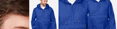- Inside placket; roll-away hood; adjustable cuffs with tabs
