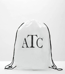 Low-density polyethylene (LDPE) material. 70 micron thickness, with two bottom metal grommets. 100% polyester drawstring. Printed on both sides as pictured. 16W x 20L.
