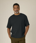 Unisex heavyweight boxy t-shirt. Oversized fit. Set-in sleeve. 1x1 rib at collar. Inside back neck tape in self-fabric. Blind stitch at sleeve cuff and hem.