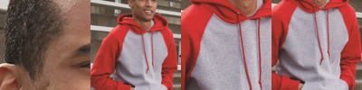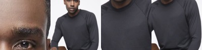 - Flatlock stitched contrast ribbed collar and raglan armholes