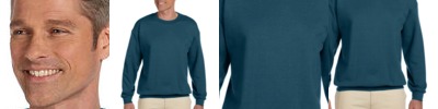 50% cotton, 50% polyester; Pill-resistant air jet yarn; Double-needle stitching throughout; 1x1 ribbed collar, cuffs and waistband with spandex;