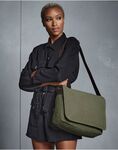 Antique brass effect fittings, adjustable webbing shoulder strap, padded base, zippered main compartment, dual rear pouch pockets and Rip-Strip™ closure.