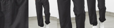 Quick dry microfibre with peached finish. Elasticated waist and drawcord, front pockets – right with zip as worn. Elasticated leg openings, side leg zips at hem, back pocket with Velcro™ fastenings, fully mesh lined. Zip across for decoration. Also available in kids'