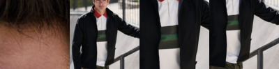 - Contrast reverse coil zippered media pocket with headphone exit port