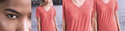 - Triblend Colorblock: 3.8-ounce, 50/25/25 poly/Airlume combed and ring spun cotton/rayon, 40 singles