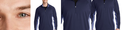 This lightweight pullover locks in color, wicks moisture and has an amped up colorblock look.