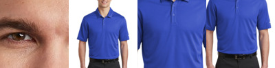 A contrast hex textured interior gives these styles a subtle exterior texture while Dri-FIT moisture management technology helps keep things from heating up. Design details include a self-fabric collar, three-button placket with dyed-to-match buttons and open hem sleeves. The contrast heat transfer Swoosh design trademark is on the left sleeve. Made of 5-ounce, 100% polyester Dri-FIT fabric.