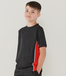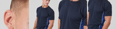 100% polyester. Wicking fabric keeps you dry and comfortable. Birds eye knit. Raglan sleeves. Contrast piping and panelling on underarms and sides. Twin needle hem.