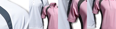 100% polyester. Permanent wicking fabric keeps you dry and comfortable. Birds eye knit. Self fabric collar. Raglan sleeves. Contrast piping and panelling on underarms and sides. Twin needle hem.