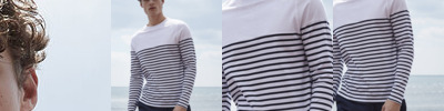 Tag-free regular fit, heavyweight long-sleeved t-shirt. Crew neck with stretch ribbed neckline. Twin-needle stitching at cuffs and hem. 'V' flatlock stitching detail at neck. Flatlock stitching at neck, shoulder seam and armholes. High chest and upper arm seams. Striped lower body and sleeves; contrast plain upper body and sleeves.