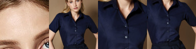 Soft interlined fused stand-up collar. Two curved front and back panels. Double-stitched sleeve and side seams. Single needle stitched yoke, cuff and armholes. Rounded hem. Spare button. Kustom Kit® woven back neck label.