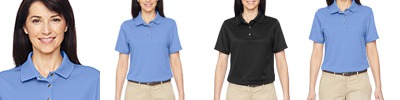6.64 oz./yd2/225 gsm, 100% polyester snag-protection plus jersey; Moisture-wicking and anti-microbial performance; No pocket styling for safety and food handling services; Matching flat-knit collar; Narrow, feminine placket; Reinforced back-neck D-patch; Center front snap placket closure; Side slits; Extra body length helps garment stay tucked in; Carbon neutral style in partnership with Green Story third party verified carbon offset program. For more information click on carbon neutral link above MSRP. ;