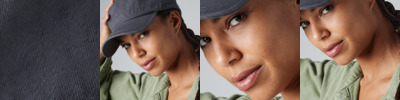 100% heavy washed cotton. Modern styling. Pre-curved peak. Self fabric strap with silver effect buckle and grommet.