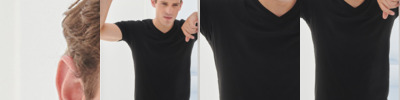 96% cotton/4% elastane.* Single jersey. Stretch fabric for a modern fit. Enzyme wash. Soft touch. Soft stretchy ribbed V neckline. Taped neck. Longer length. Twin needle sleeves and hem. Tear out label.