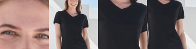96% cotton/4% elastane single jersey.* Stretch fabric for a modern fit. Enzyme wash. Soft touch. Soft stretchy ribbed V neckline. Taped neck. Side seams. Longer length. Twin needle stitching. Tear out label.