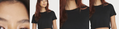 40% cotton/40% viscose/20% polyester. Ladies fit. Ribbed neckline. Taped neck. Cropped length. Twin needle sleeves and hem. Unbranded size label.