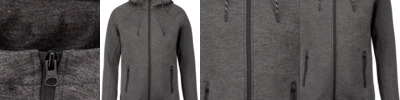 79% polyester/15% viscose/6% elastane. Jersey lined hood. Two tone contrast drawcord with plastic tips. Raglan sleeves. Collar high full length low profile zip. Two front zip pockets with fused seams. Contrast elasticated cuffs. Contrast stretch bound hem.