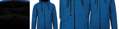 100% polyester. Jersey lined hood with contrast drawcord. Full length contrast low profile zip. Right chest contrast zip pocket. Two front contrast zip pockets. Panels with topstitch finish. Stretch contrast bound cuffs and hem.