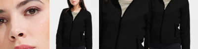 Two layer stretch soft shell. 96% polyester/4% elastane outer. Polyester fleece lining. Showerproof. Collar high full length zip. Two front zip pockets. Open cuffs and hem. Curved drop hem.