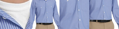 Fused stand-up button down collar. 2-button cuffs with 1-button cuff placket. Double-stitched side and sleeve seams. Chest pocket to left side as worn. Single-stitched yoke and armholes. Rounded hem. Darted back panel. Spare buttons. Kustom Kit® woven back neck label.
