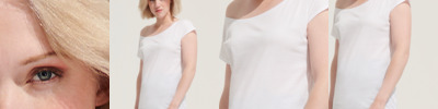 Single Jersey. Neutral size label without branding, neck print possible. Low cut braided sleeve opening and braided wide round neck. Double seams at the hem. Long cut.