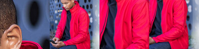 Zip fastening with invisible tab and press studs. 2 zipped outside pockets. 1 inside pocket. Detachable hood. Fleece lined collar. Zip access for decoration. BSCI certified.