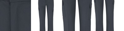 65% polyester/35% cotton. Traditional waistband with belt loops.Zip fly with button over.Two side pockets.Rear patch pocket.Two side leg cargo pockets with flaps.