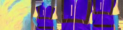 - Two 5cm width sewn-on reflective tapes around the body and one over each shoulder