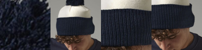 100% soft touch acrylic. Double layer knit.Dual style - cuffed or slouch.Ribbed cuff.Contrast pom pom and cuff.