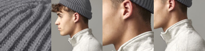 95.5% acrylic/4% polyester/0.5% elastane. Ribbed knit.Retro styling.Shallow crown.Cuffed design.