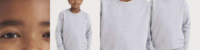 80% ringspun cotton/20% polyester.* Soft cotton faced fabric.Brushed back fleece.Drop shoulder style.Stylish fit.Taped neck.Ribbed collar, cuffs and hem.Name label sewn in side seam.Twin needle stitching.Tear out label.