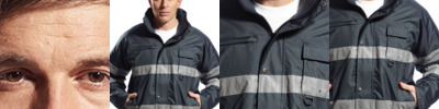 300D PU coated oxford polyester outer. Polyester padding and lining.Conforms to EN343: class 3:1 and EN342 0.345m² K/W(B)2, X.Waterproof with taped seams.Detachable adjustable concealed hood.Fleece lined collar.Full length two way zip with studded storm flap.Two reflective bands around the body and sleeves.Left chest pocket.Radio loop.Media pocket.D-ring.Zip out ID pocket.Two front pockets.Inner knitted storm cuffs.Stud adjustable outer cuffs.Part elasticated hem.Access for decoration.