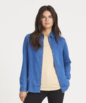 4.0 oz. 80/20 cotton/poly; 2 chest pockets, button flaps; Western half back yoke; Pearlized buttons; modern fit with roll up sleeve placket; Ladies tapered fit;